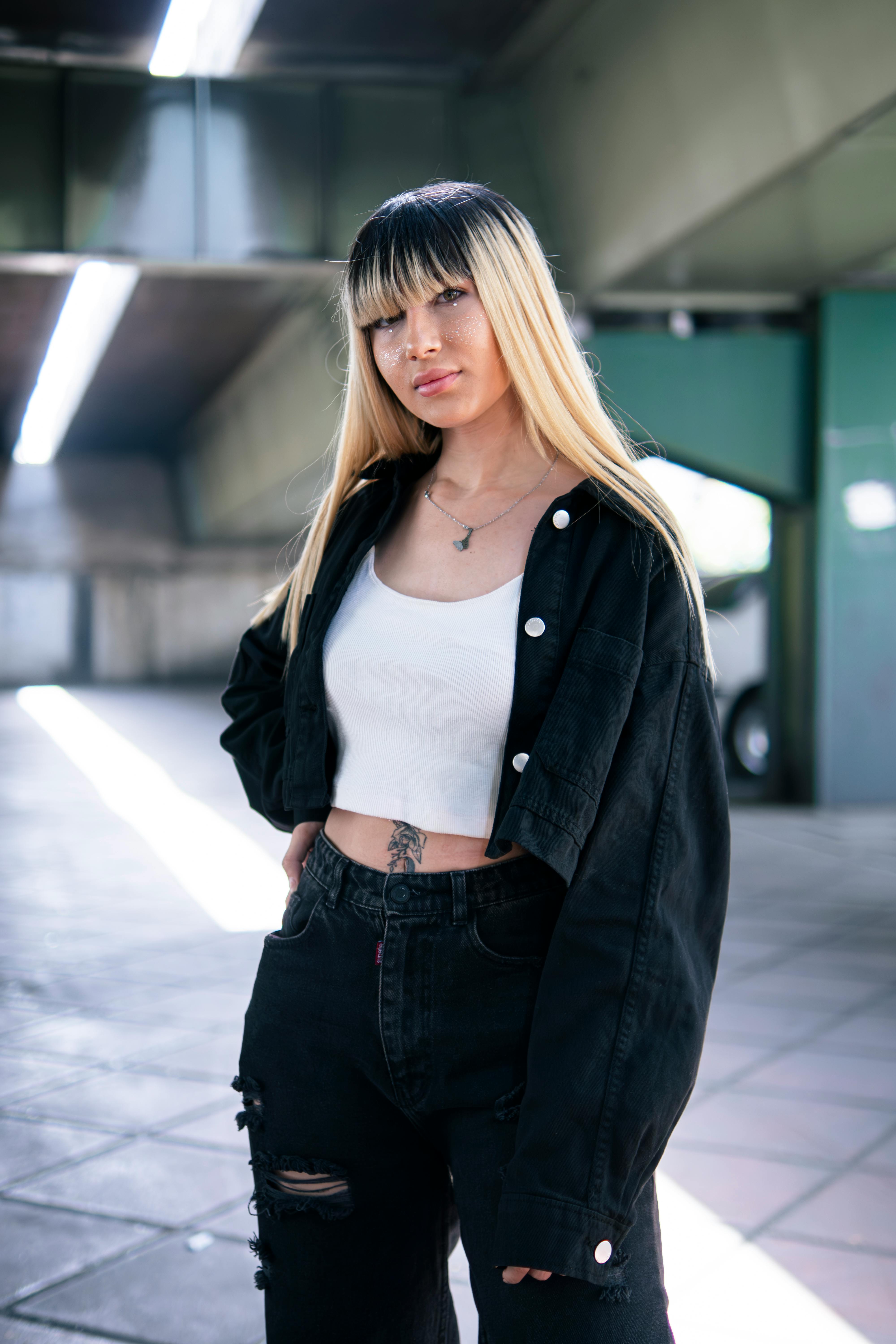 The woman is rapping her self-introduction on a neon-lit street: "Yo! I’m Nova — cyber-brain in motion, Code my own glow, no need for devotion. AI. on my wrist, future’s my mission, Unlock the matrix — yeah, I’m the vision!